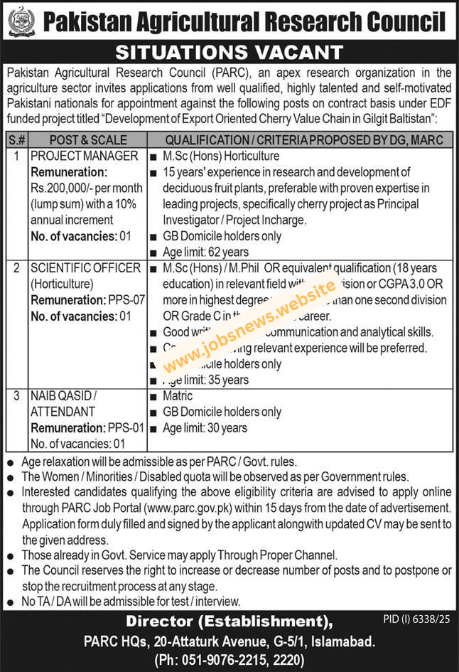 Pakistan agricultural research council new jobs 2026 for the young talented and highly qualified candidates searching for their career within PARC in 2026.PARC Invites applications for the following vacancies of 2026 is project manager, scientific officer, attendant and naib qasid.